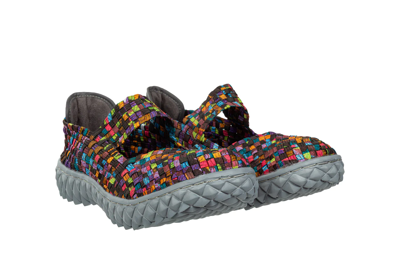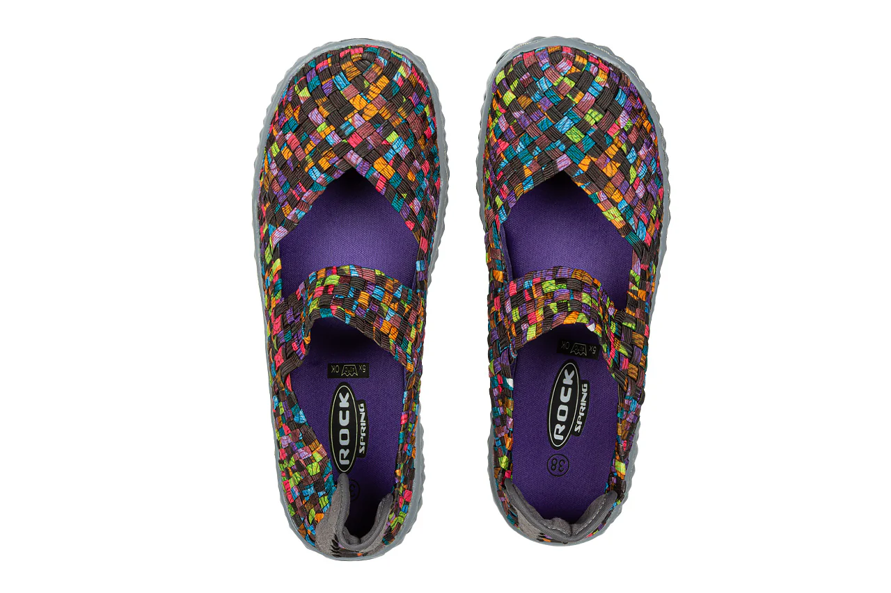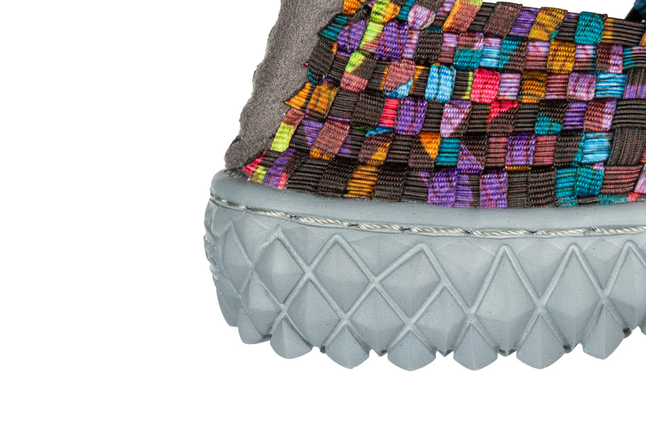 - Pleciona cholewka wykonana z elastycznych gumek idealnie dopasowuje się do kształtu damskiej stopy.
