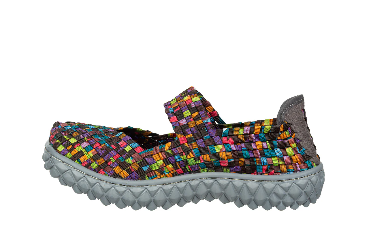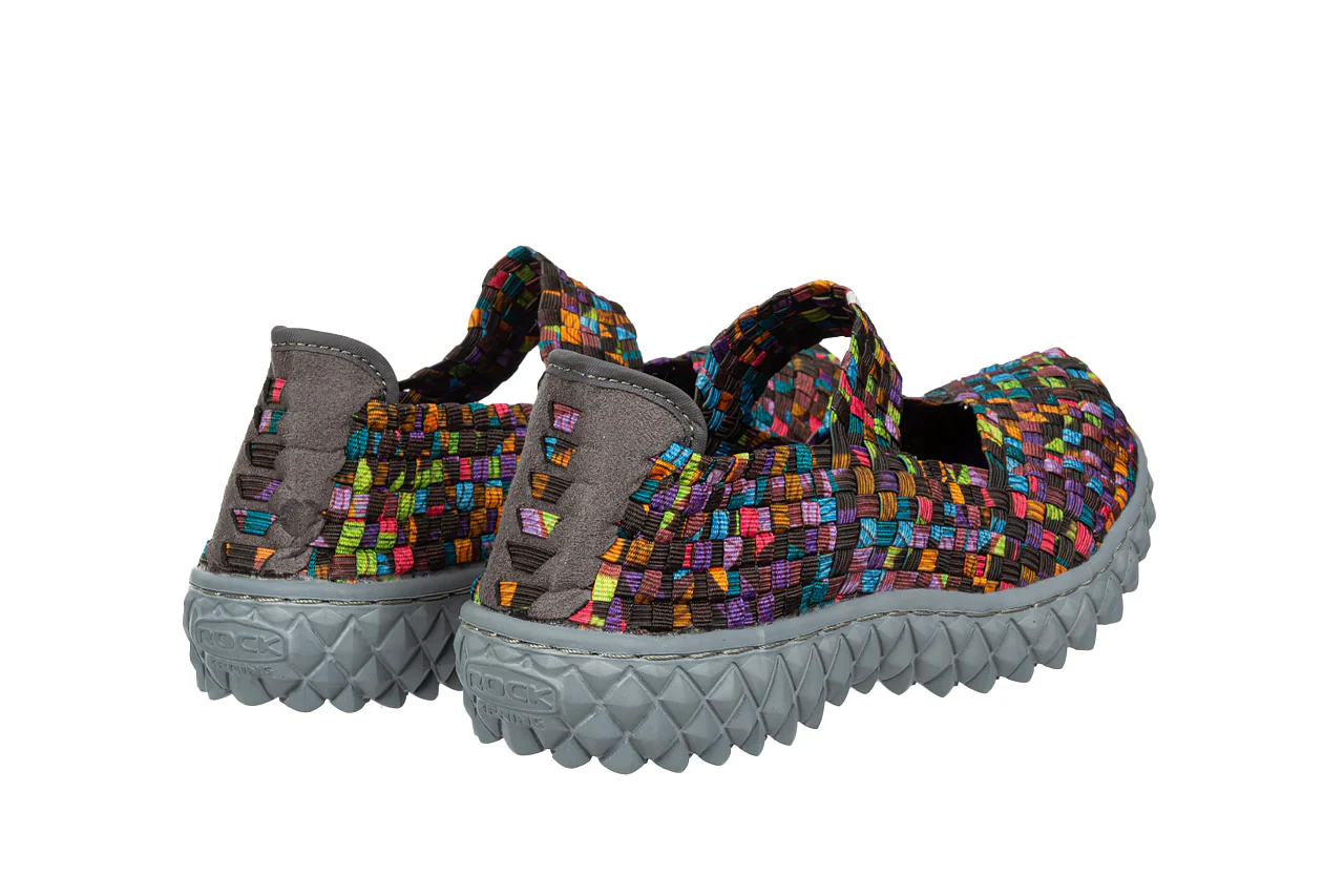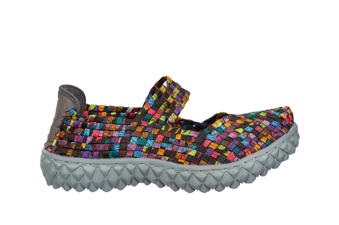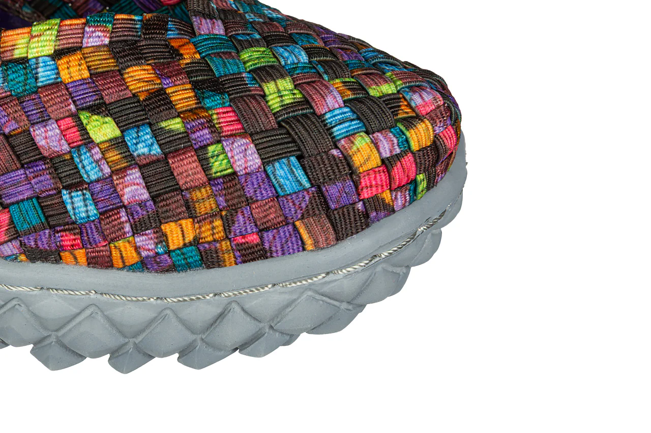 - Pleciona cholewka wykonana z elastycznych gumek idealnie dopasowuje się do kształtu damskiej stopy.