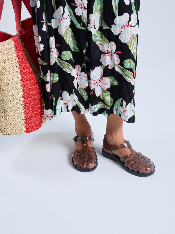 - Eleganckie, lekkie sandałki z brokatowym efektem.